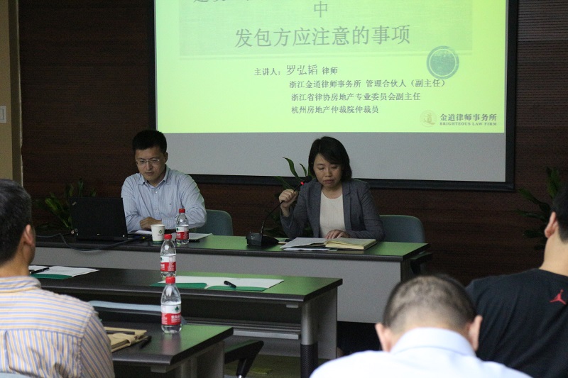 10月21日,為貫徹落實國資監(jiān)管要求,進一步加強建設工程項目管理,推進科學決策,提高各單位建設工程項目招投標工作質量,保證《浙江省手工業(yè)合作社聯(lián)合社建設工程項目招投標管理暫行辦法》的順利實施,集團公司邀請杭州市建設工程質量安全監(jiān)督總站陳安東高級工程師和浙江金道律師事務所羅弘韜、陳麗媚律師,分別作了《招投標概述及案例分析》、《招標投標法實施條例解讀》和《建設工程施工合同簽訂和履行過程中發(fā)包方應注意的事項》、《建設工程招投標過程中業(yè)主的風險及防范》專題講座。