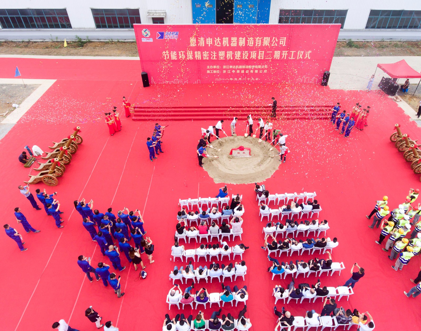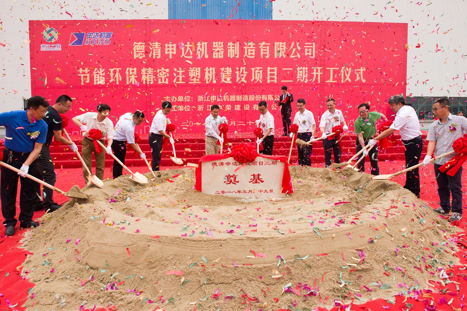 莫干山高新區(qū)管委會(huì)各職能部門負(fù)責(zé)人,集團(tuán)公司各企業(yè)各部門主要負(fù)責(zé)人,申達(dá)公司干部員工及經(jīng)銷商、供應(yīng)商、大客戶、銀行金融機(jī)構(gòu)、施工單位、監(jiān)理單位代表等共約140余人參加開工儀式。
